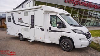 Hjuldrift: Framhjulsdrift, Märke chassi: Fiat Ducato, Vid köp av begagnad husbil hos oss ingår: Stor bodelsservice - Provtryckning av gasolsystem - Fukttest med protokoll - Motorservice - Kamremsbyte om erforderligt - Besiktning om erforderligt - Invändig städning - Utvändig tvätt - Demonstration av fordonet på leveransdagen - Garantier (gäller ej nivå- och tempgivare) - Utrustning inom parentes = Kontrolleras inte kan vara ur funktion och ingen garanti lämnas - Ospecificerad utrustning medföljer fordon utan garanti - Tjänstevikten kan påverkas av extrautrustning - Förmånlig finansiering - Gäller om inget annat avtalas
