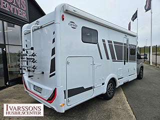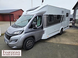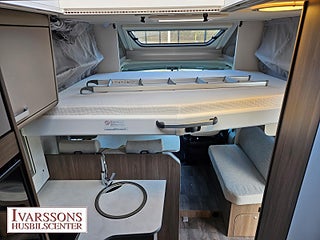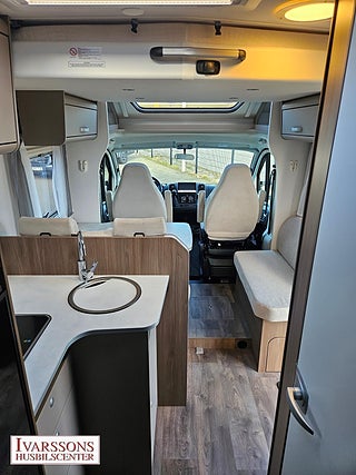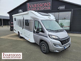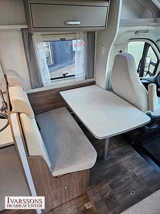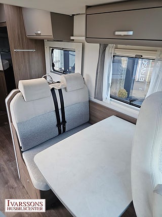 Modellår: 2024, Motor: Fiat Ducato 2.2 JTD, Karosstyp: Halvintegrerad med taksäng, Värmesystem: Truma - luftburen fläktvärme, Försäkring: ca 5 000 kr/år, Instrumentpanel med silverdekor, Truma - luftburen fläktvärme, Klimatanläggning - bildel, Stort kylskåp med separat frys, Taksäng ovanför sittgrupp - manuell, Extra bäddyna mellan långbäddar, Fönster med mörkläggning/myggnät, Färskvattentank - frysskyddad, Spillvattentank - frysskyddad, Multimediaspelare med Backkamera, Lastluckor - dubbla till garage, Lastutrymme - stort garage, Metalliclackering förarhytt, Metallic-lackering Artense-grå, Stötfångare lackerad i artense-grå, Lackering bodel: Vit slätplåt, Ombädding enkelbädd tilll dubbelsäng, Nedfällbar säng med Clima-Plux element, Ratt & växelspaksknopp i läderutförande, Strålklastare med svart ram, Instrumentpanel med applikationer (Techno-Trim), Blanksvart grill med kromdetaljer, Extra lastlucka (800x850), Aerodynamiska karosskomponenter på bakstammen, Vikbara mörkläggningsgardiner, 9" Media receiver Apple Carplay & Android Auto med backkamera