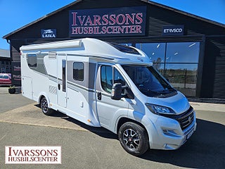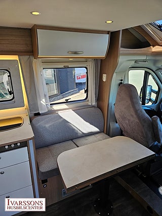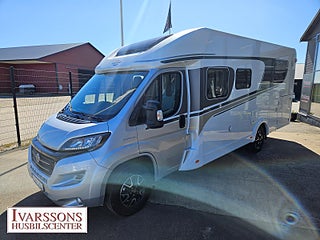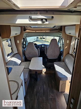 Modellår: 2021, Motor: Fiat Ducato 2.3 JTD, Karosstyp: Halvintegrerad med taksäng, Värmesystem: Truma - luftburen fläktvärme, Försäkring: ca 5 000 kr/år, Instrumentpanel med silverdekor, Truma - luftburen fläktvärme, Klimatanläggning - bildel, Taksäng ovanför sittgrupp - manuell, Multimediaspelare med Backkamera, Färskvattentank - frysskyddad, Spillvattentank - frysskyddad, Stort kylskåp med separat frys, Fönster med mörkläggning/myggnät, Lastluckor - dubbla till garage, Lastutrymme - stort garage, Vinteranpassad