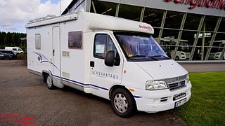 Märke chassi: Fiat Ducato, Vid köp av begagnad husbil hos oss ingår: Stor bodelsservice - Provtryckning av gasolsystem - Fukttest med protokoll - Motorservice - Kamremsbyte om erforderligt - Besiktning om erforderligt - Invändig städning - Utvändig tvätt - Demonstration av fordonet på leveransdagen - Garantier (gäller ej nivå- och tempgivare) - Utrustning inom parentes = Kontrolleras inte kan vara ur funktion och ingen garanti lämnas - Ospecificerad utrustning medföljer fordon utan garanti - Tjänstevikten kan påverkas av extrautrustning - Förmånlig finansiering - Gäller om inget annat avtalas
