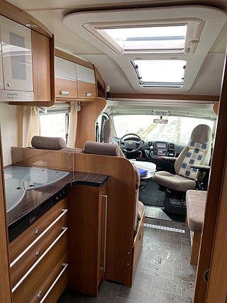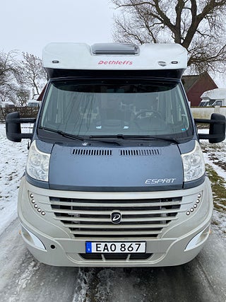 Dethleffs Esprit Comfort Master Class T 7150 -14. Tillfälle att förvärva en riktig fin och exemplariskt skött Premium husbil, endast två ägare och 6.300 mil. Servad och kamremssats bytt mars 2025 vid 6.000 mil. Besiktigad tom 2026-09-30.