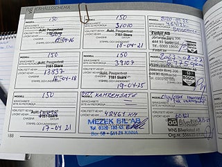 Fordonets historik - 21 händelser finns registrerade