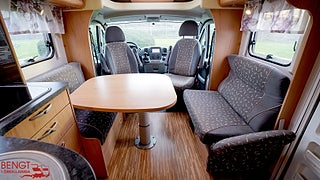 Märke chassi: Fiat Ducato, Vid köp av begagnad husbil hos oss ingår: Stor bodelsservice - Provtryckning av gasolsystem - Fukttest med protokoll - Motorservice - Kamremsbyte om erforderligt - Besiktning om erforderligt - Invändig städning - Utvändig tvätt - Demonstration av fordonet på leveransdagen - Garantier (gäller ej nivå- och tempgivare) - Utrustning inom parentes = Kontrolleras inte kan vara ur funktion och ingen garanti lämnas - Ospecificerad utrustning medföljer fordon utan garanti - Tjänstevikten kan påverkas av extrautrustning - Förmånlig finansiering - Gäller om inget annat avtalas