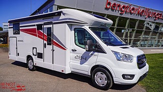 Hjuldrift: Framhjulsdrift, Märke chassi: Ford Transit, Ford Chassiuppgradering till 4100 kg, Extra assistanspaket (Elektrisk vindruteavfrostare, Adaptiv farthållare med filhållning och Stop&Go-, Hastighetsskyltigenkänning #3, Integrerad med adaptiv farthållare, Elhopfällbara speglar med elektrisk avfrostare, Open Air paket (Antracit Markis, Strålkastare m statiska kurvljus, 12'' multifunktionsdisplay SYN4, Digital 8'' cockpit m 5G-modem, "Intelligent Speed Assist", Elektrisk parkeringsbroms, Varningssytem för enkelriktad trafik, Aut vindrutetorkare m regnsensor, XL bodelsdörr m 2 låspunkter, Elektrisk nedfällbar säng dinett, Tjänstevikten kan påverkas av extrautrustning