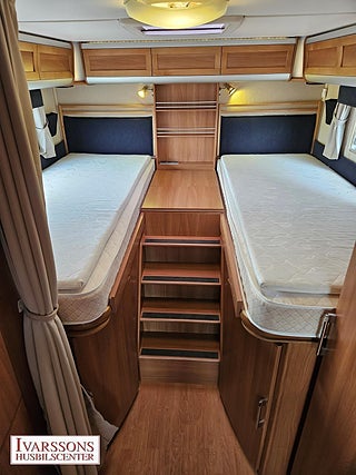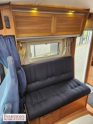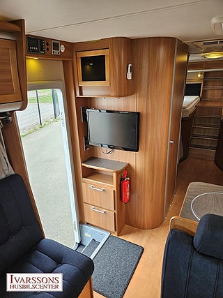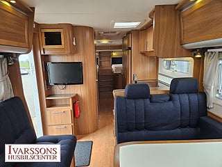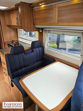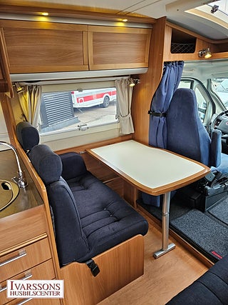 Modellår: 2012, Motor: Fiat Ducato 3.0 JTD, Karosstyp: Halvintegrerad, Värmesystem: ALDE - vattenburen centralvärme, Försäkring: ca 5 000 kr/år, Instrumentpanel med trädekor, ALDE - vattenburen centralvärme, Klimatanläggning - bildel, Gasolugn med separat grill, Stort kylskåp med separat frys, Fönster med mörkläggning/myggnät, Färskvattentank - frysskyddad, Spillvattentank - frysskyddad, Multimediaspelare med Backkamera, Lastluckor - dubbla till garage, Lastutrymme - stort garage, Luftfjädring