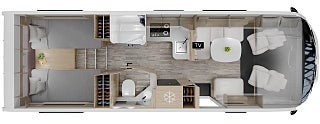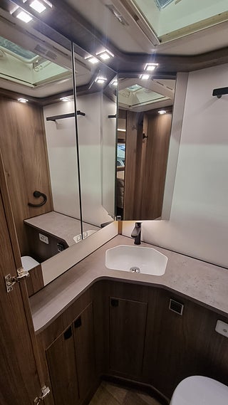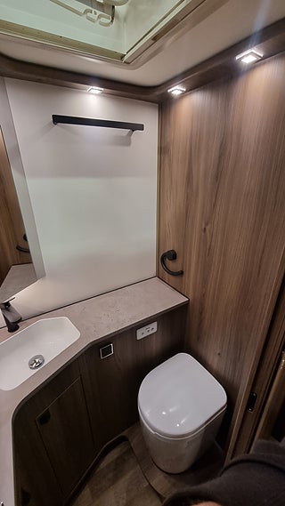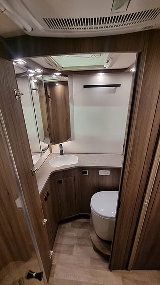 Alde Compact 3030 med zonvärme och vattenburen golvvärme hela vägen fram ger en fantastisk vinterstandard. Husbilen har även värmeväxlare bränslevärmare torkskåp och uppvärmt skofack. Fresh Jet FJX7 aircondition håller bodelen sval sommartid.