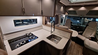 Inredning i Atlas Zeder med Sabbia High Gloss ger en lyxig och harmonisk känsla. Ljudisolerat innertak och LED belysning höjer komforten ytterligare. Köket har hybridspis med induktion och gasol samt ugn och köksfläkt. Sovrummet har LGB bäddar med spiralmadrasser och elektriskt justerbara huvudgärden.