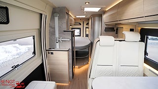 Hjuldrift: Framhjulsdrift, Klädsel: Noumea 65Y // Luceo, Märke chassi: Fiat Ducato, LOUNGE PACK +: Automatisk AC i hytt, induktivladdning smartphone, SAFETY + PACK: Adaptiv farthållare >30 km/h, autobroms med fotgängardetektion, intelligent fartassistans, 3.5T (från 140 hk manuell 3, TPMS (automatisk däcktrycksövervakning), Truma Combi 6 EH Diesel( diesel+el) m värmereglering CP Plus, Färskvattentank 10/110 lit, Uppv spillvattentank 85 lit, Coming-home funktion m belysning, Elektrisk parkeringsbroms, Elbackspeglar m defroster, Förstärkt bakaxelfjädring, Däckreparationssats vid punktering, Multimedia DAB PIONEER 9'' skärm, APPLE CARPLAY/ANDROID AUTO, Tjänstevikten kan påverkas av extrautrustning, Sökord Van Campervan Plåtis V 62