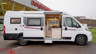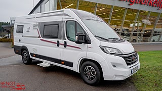 Hjuldrift: Framhjulsdrift, Märke chassi: Fiat Ducato, Motortyp: 2.3 MJ EURO 6 D, FIAT 9-växlad automatlåda, Radiokontroller på ratten, Tillverkningsår 2021. Vid köp av begagnad husbil hos oss ingår: Stor bodelsservice - Provtryckning av gasolsystem - Fukttest med protokoll - Motorservice - Kamremsbyte om erforderligt - Besiktning om erforderligt - Invändig städning - Utvändig tvätt - Demonstration av fordonet på leveransdagen - Garantier (gäller ej nivå- och tempgivare) - Utrustning inom parentes = Kontrolleras inte kan vara ur funktion och ingen garanti lämnas - Ospecificerad utrustning medföljer fordon utan garanti - Tjänstevikten kan påverkas av extrautrustning - Förmånlig finansiering - Gäller om inget annat avtalas.