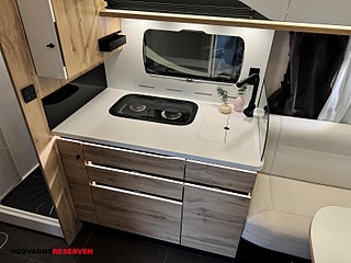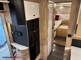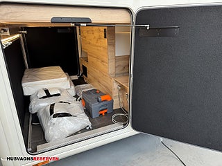 Modellår: 2025, Luxury - paket = Läderklädsel (Prestige Satin), Långbäddar bak (elektriskt justerbara i sidled), Taksäng fram (extra stor) Elektrisk, Mörkläggning fram (elektrisk), Vattenslang för påfyllning av vatten, kabelrulle (för anslutning till 230v), Duo kontroll (gasol omkopplare), Ledbelysning under markis, Sidofönster fram med dubbelglas, Elektrisk gråvattentömning från förarplatsen med kamera, Volymetriskt- och Perimiterlarm med kontakter på de två lastrumsdörrarna.