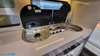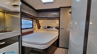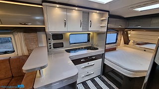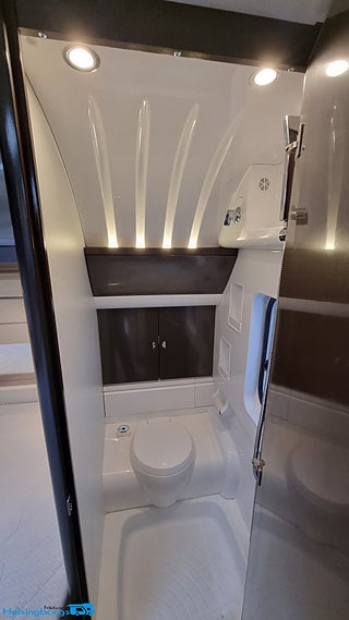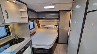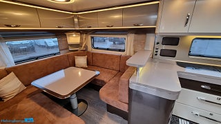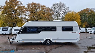 En pedantiskt skött Hobby 560 CFE Premium utrustad med de snygga mörktonade rutorna plus stor ruta på bakväggen. En rymlig fransk säng bak med rymligt förvaring under. Husvagnen hålls sval på sommardagar med en Truma AC som även kan värma vid behov. Kylan hålls borta med ALDEvattenburen cetnralvärme som dessutom förstäkrs med elektreiks golvvärme vilket gör den redo för nordoskt klimat., Du ställer enkelt husvagnen på plats med en premium Mover från Truma XT givetvis med fjärrkontroll. FRam stiiter ett praktiskt cykelställ med plast för 2 cyklar cykeltället fälls enkelt fram så man kommer ut den praktiska gasolkofferten. Husvagnen har även en påsmarkis för skugga på soliga dagar. Batteriet håller du extra laddat med solcellen på taket. Användbart att kunna toppa upp batteriet om man står och fri campar. Ett praktiskt säkerhetsskåp finns monterat. Husvagnen är även utrustad med reservhjul med med domkratsfäste i chassit.,