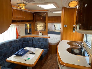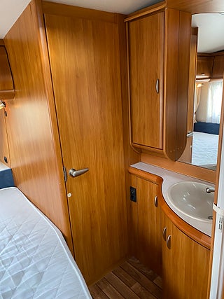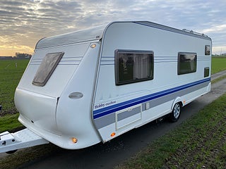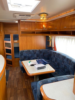 Hobby 560 Kmfe Excellent -09. Mycket fin och välskött barnkammarvagn extra utrustad med Dometic AC och Truma Mover. Fukt och gasoltestad u, a december 2025. Besiktigad tom 2027-04-30 och helt körklar.