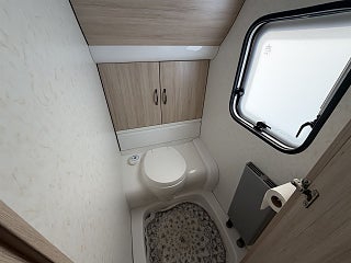 Fram är det en dubbelsäng 160 cm bredd och toalett bredvid dubbelsäng fram och vask med spegel utanför toaletten.