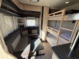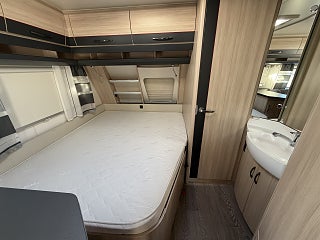 3-våning säng med egen mindre soffgrupp i bakre delen.