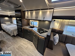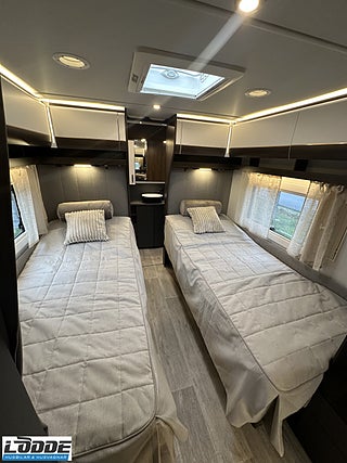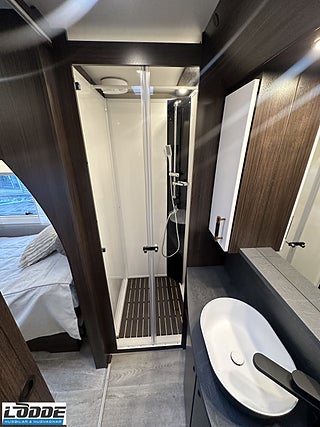 STANDARD I CHIMERA: KÖK: Induktionshäll och gasolspis (2+2), Mikro och ugn 230V i pelare, Dubbla kompressor kylar ink 100 AH AGM Batteri och batteribooster, SOVRUM: 230 V-uttag vid sänggavel, Super de Luxe bäddmadrass 6 cm, Sängbelysning med USB-uttag, Vridbar elektrisk kassettoalett: SITTGRUPP, ÖVRIGT INVÄNDIGT: Myggnätsdörr, Extra cirkulationspump 12 V ställbar, Möjligt att reglera golvvärme/element, Nivåmätare avloppstank & färskvatten, Ventilationslucka/-or (BSL), Tertek digital TV & internet antenn 360 ° inkl stång, Gasoluttag på koffertvägg, LED-belysning lastlucka & gasolkoffert, Automatiskt uppvärmt avlopp 230 V, Gasolomkopplare Alde Duocontrol med krockcensor, Mörkt kjolpaket med koppar rand