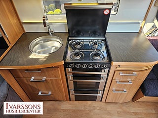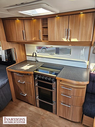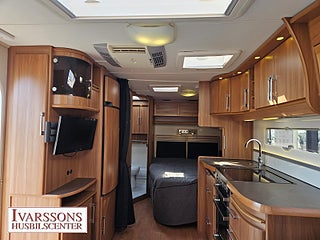 Modellår: 2011, Värmesystem: ALDE - vattenburen centralvärme, Försäkring: ca 3 000 kr/år, ALDE - vattenburen centralvärme, Gasolugn med separat grill, Stort kylskåp med separat frys, Fönster med mörkläggning/myggnät, Förtält Ventura Pacific D300
