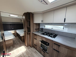 EXTERN ANTENN TILL ROUTER, SÄNG: (ELEKTRISK UPPFÄLLBAR), TOALETT TYP: (THETFORD), ALUFÄLG (TANDEMAXLAD), MAXIMAL TOTALVIKT: 2650kg, Upplev friheten med Kabe Royal GLE KS 2025! En husvagn som kombinerar stil komfort och kvalitet. Med en rymlig och inbjudande inredning samt högkvalitativa material och moderna bekvämligheter blir varje resa en minnesvärd upplevelse.