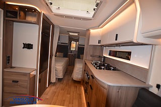 Modellår: 2025, Värmesystem: ALDE - vattenburen centralvärme, ALDE - vattenburen centralvärme, Gasolugn med separat grill, Stort kylskåp med separat frys, Fönster med mörkläggning/myggnät, Eluttag för TV-antenn/12V/230V - utvändigt, Färskvattentank - frysskyddad, Spillvattentank - frysskyddad, TV-fäste