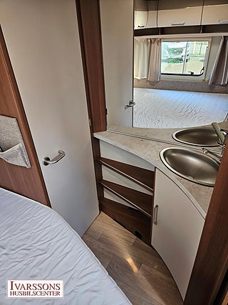 Modellår: 2019, Värmesystem: Truma - luftburen fläktvärme, Försäkring: ca 3 000 kr/år, Truma - luftburen fläktvärme, Stort kylskåp med separat frys, Fönster med mörkläggning/myggnät, Taklucka Mini-Heki