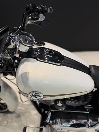 Denna motorcykel är extremt påkostad med delar för flera 10.000:- tals kronor. Samma ägare sen 2017 (Gentleman född 1954) och endast 1 ägare innan honom. Med Vance & Hines avgassystem och Screaming Eagle luftfilter levererar motorn en härlig råstyrka, djup ljudbild och en adrenalinfylld körkänsla som får varje mil att kännas som ren magi. Extra LED-ljus är monterade som enkelt tänds och släcks med knapp på styret. Motorcykeln är sänkt för att få fram det feta bakdäcket ännu mer. Sidoväska finns och registreringsskylten sitter snyggt på sidan också. Z-bar styre som verkligen gör denna båge unik. Ett special framskärm som även den gör hojen det där extra! (Original delar finns till ex. avgasrör och framskärm)