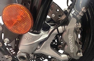 Utrustning: Quickshifter (upp/ner) för sömlösa växlingar, ställbar Traction Control i 8 steg, grymma Brembo-bromsar och fullt justerbar premiumfjädring från Marzocchi (fram) och ZF (bak).