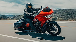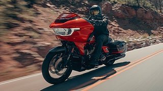 2026 års CVO Road Glide ST är Harley-Davidsons mest hänsynslösa bagger med inspiration från racing. Milwaukee-Eight™ 121 High Output-motorn levererar otrolig kraft och prestanda, matad av ett Heavy Breather-intag och fulländad med ljuddämpare med titanlock. Detaljer i smidd kolfiber, höga risers med fabriksmonterad motorstång, fjädring med extern reservoar och särskilda tävlingskörlägen ger utseendet och känslan av ett specialbyggt vapen konstruerat för att överträffa allt runt omkring dig.