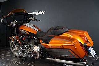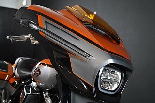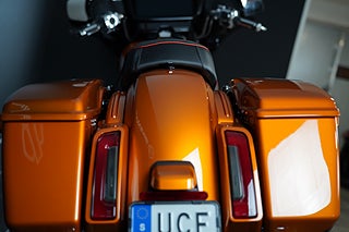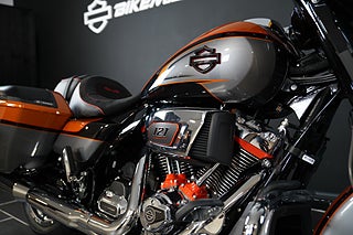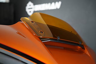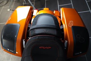 Den helt nya Torched Orange Tri-Tone-lackeringen är endast tillgänglig på CVO Street Glide och kräver uppmärksamhet från alla vinklar. Den matchas med ljus krom och klaranodiserade detaljer på drivlinan, avgassystemet, reglagen och konsolen, medan gafflarna, de nedre kåporna och bromsoken glänser under en bärnstenstonad vindruta som fulländar det karakteristiska CVO-utseendet.
