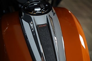 I hjärtat av CVO Street Glide finns Milwaukee-Eight VVT 121-motorn, inställd för mjuk och tillgänglig effekt över hela varvtalsområdet. Dess variabla ventilstyrning breddar effektområdet för starkare drag i botten, lätt vridmoment i mellanregistret och förbättrad bränsleeffektivitet, vilket gör den idealisk för långfärder, passagerarkomfort och trygga omkörningar. Den levererar 183 Nm vridmoment vid 3 500 varv/min och 86 kW vid 5020 varv/min och ljus krom och drivlinedetaljer i Harley-Davidson Orange får den att se lika raffinerad ut som den känns.