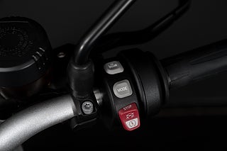 Svensksåld. Värmehandtag. ABS. Centralstöd. Olika körlägen. ESA (Adaptiva dämpare). ASC (Antisladd). Brembo bromsar.