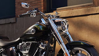 Ett skulpterat strålkastarhus i krom ramar in fronten på Fat Boy, och hyser en kraftfull 178 mm LED-strålkastare. Ljusstarka LED-signaler kompletterar motorcykelns heltäckande LED-paket där tidlös stil möter moderna förväntningar på hur man syns på vägarna. Det är ett klassiskt ansikte, vässat genom en modern lins.