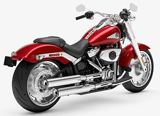 Solida gjutna Lakester-aluminiumfälgar i kombination med breda fram- och bakdäck, ger Fat Boy dess omisskännliga ångvältshållning och stabila utseende oavsett vinkel.