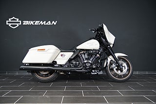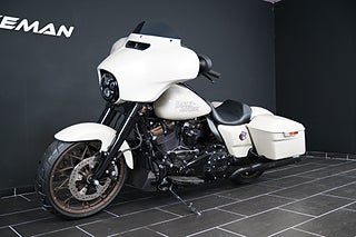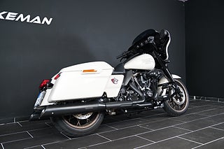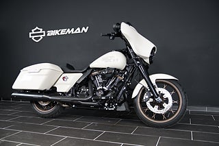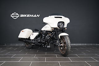 En fantastiskt vacker Street Glide ST i White Sand Pearl som gifter sig fint med alla brons-detaljer och fälgar. Utrustad med Screamin' Eagle Slip-Ons som mullrar fint. I en sån här maskin har du carplay , farthållare och massor med kraft för att ta dina äventyr till nya nivåer.