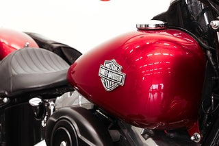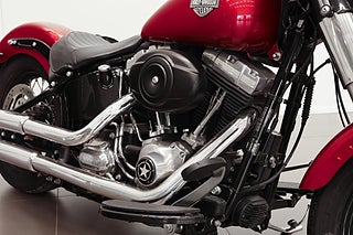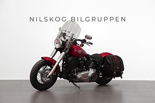Svensksåld Softail Slim i färgen Ember red. Utrustad med Twin-Cam 103” motorn, buller från Vance & Hines, handsydd läderväska från Ham-design, larm, värmehandtag, vindruta, ABS-bromsar och mycket mer. Originalsystem finns kvar!