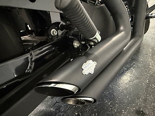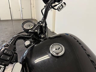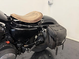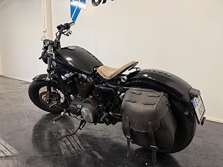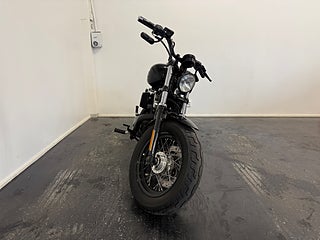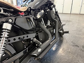 Motorcykeln är lackerad i svart, vilket förstärker den aggressiva och tidlösa designen som gjort Forty-Eight till en av de mest populära modellerna i Sportster-serien.