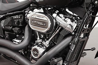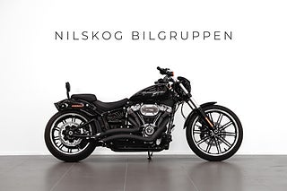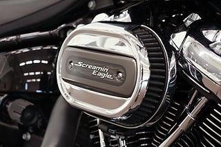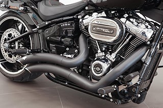 Harley-Davidson Softail Breakout utrustad med Milwaukee-Eight 114” motorn på 1868cc och 6 växlar, Vance & Hines Big Radius, Screaming Eagle luftburk, sissybar med snabbfästen, ABS-bromsar och mycket mer.