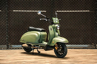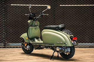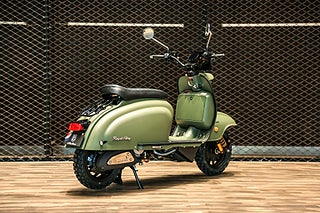 Helt nya Royal Alloy JPS offroad hämtar inspiration från de ikoniska klassiska linjerna från sent 50-tal. JPS är uppdaterad med den senaste teknologin för att säkerställa optimal säkerhet, effektivitet och tillförlitlighet. Standard på alla JPS modeller är Kaifa nitrogen fyllda främre stötdämpare för optimal komfort samt främre färdkamera. En unik TFT-skärm säkerställer all förarinformation och du kan spegla din mobiltelefon för exempelvis navigation. JPS offroad levereras i slittålig armerad miltärgrön kulör.