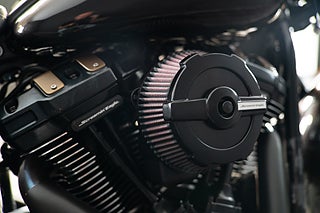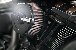 En riktigt fin hoj som har blivit uppgraderad med ett steg 4 kit! Utrustad med Dr.Jekill & Mr.Hyde som har ställbara spjäll för bullernivå genom en knapp på styret. En Saddlemen Profiler LS Sadel. Quarter Fairing Kåpa. HD Risers för ett något högre styre. Motorbar - Motorskydd. HeinzBikes Miniblinkers Bak & Integrerade blinkers i backspeglarna. Laydown Regplåt. Screamin' Eagle Luftburk. Unikt lackerat. Dominion serien med Handtag, Ventilkåpor, Transmissionskåpa, Kam-Kåpa, Derby-Cover & Tanklock.