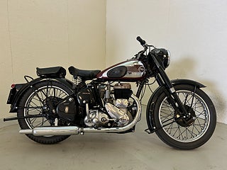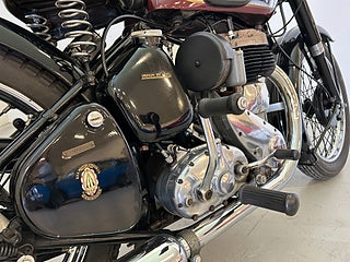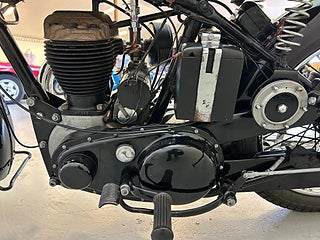Just detta exemplar är tillverkat 1953 och såldes ny av Erich Nilsson i Skånes Fagerhult, en mc handlare som fortfarande finns kvar. Jag fick den 1969, då var den fortfarande komplett men i ett ganska dåligt skick. Under tre år renoverade jag den och kunde köra den till besiktningen 1972 där den gick igenom utan anmärkningar. Sen dess har den gått cirka 1000 mil, dvs den är körd väldigt sparsamt. Med 13 hkr är den ingen raket, men passar bra på 70 vägar då den går väldigt lugnt med dunket ifrån en encylindrig motor.