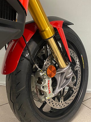 The Multistrada V4 Pikes Peak was developed to bring the sporty qualities of the Multistrada V4 S to the extreme: a dedicated riding position, 17" wheels with sports tyres, single-sided swingarm, Öhlins suspension and the new Race Riding Mode.