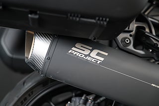 En riktigt fint utrustad Pan America ST i Vivid Black. Utrustad med avgasrör från SC Project med lindade headers. Låter riktigt bra! Luftfiltret bytt till ett Screamin' Eagle Airflow för högre luftflöde och effekt. Tailtidy gjort för en snyggare, slim bakände. Svarta Axel-Covers både fram & bak som svartar till looken lite extra. Sport Bags Sidoväskor som är folierade svarta.