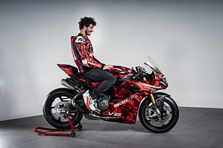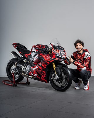 Denna specialutgåva av Panigale V2 har utvecklats med utgångspunkt i dess roll som träningsmotorcykel för Francesco Bagnaia. Den dedikerade utrustningen i denna version utgör en idealisk setup för bankörning: styren i racingposition, smidda hjul och fler tävlingsinspirerade detaljer som gör Panigale V2 ännu mer effektiv över curbsen.