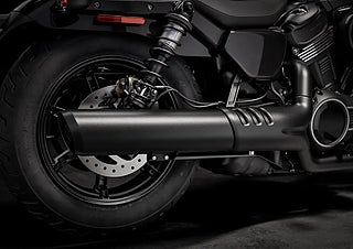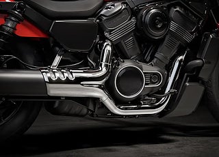 Det lätta 2-i-1-avgassystemet matchas med det nedåtriktade luftintaget och öppnar upp Revolution Max-motorn för friare andning och skarpare respons. Det är anpassat för kraft, balanserad för symmetri och byggt för att ge Nightster ett utseende och ljud som är omisskännligt piggt, modernt och typiskt Harley-Davidson.