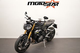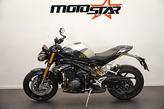 Motorn är Triumphs fantastiska trippel på 183 hk vilket ger denna skönhet gott om fartresurser. Bromsarna är Brembos Stylema vilka ger bra med bett och fantastisk känsla tillsammans med omspunna bromsslangar. Mycket gott har skrivits om denna hoj av motorpressen runtom i världen och upplevelsen i verkligheten gör dig inte besviken. Vad sägs bland annat om en elektronisk wheelie-kontroll som säkerställer en förinställd höjd på framhjulet om det skulle råka lyfta (rent teoretiskt, såklart) vid gaspådrag.