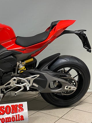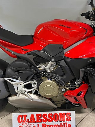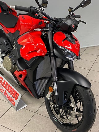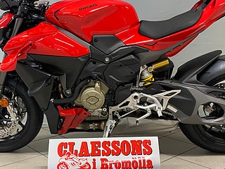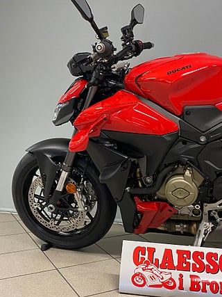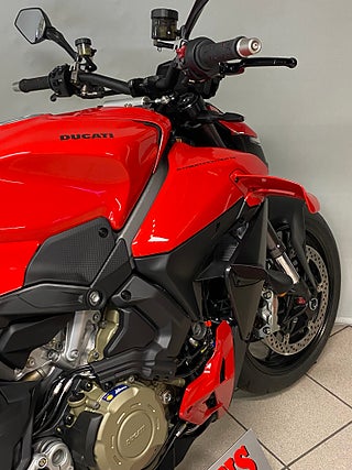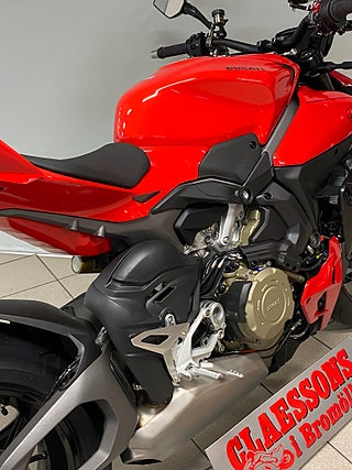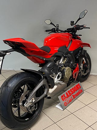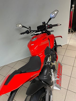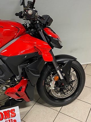 The natural evolution of the family is a bike that pushes the concepts of the "Fight Formula" even further, the key elements of which are the Panigale V4 stripped of the fairings, high and wide handlebars, 178 kg weight, 208 hp Desmosedici Stradale engine, biplane wings and latest generation electronic package.