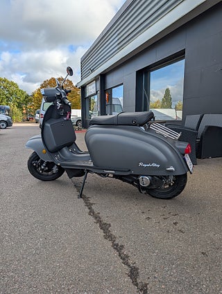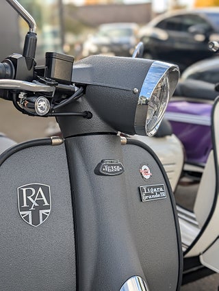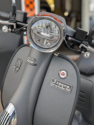 Tigara Grande är Royal Alloys flaggskepp som kombinerar högsta uppmärksamhet på detaljer med förstklassig utrustning. Motorn är en 4-ventilsmotor, vätskekyld och med BOSCH insprutning: en garanti för robusthet, kvalitet och prestanda för att använda din TG både till vardags och till upplevelser. 350 varianten är den starkaste motorn hittills i form av ett vridmoment på hela 27, 5 Nm vid 6000 varv samt 27 Hk vid 8000 varv. TG 350 SE finns i ett flertal läckra färger inklusive armerad grå vilket är en lackering som är betydligt mer oöm än en traditionell.