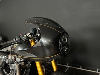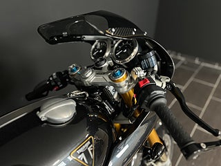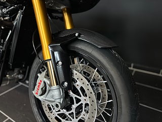 Nu har vi fått händerna på den fantastiskt unika Triumph Thruxton TFC! Det här exemplaret är i suveränt skick med endast 74 mil på mätaren! Nummer 624 av endast 750 gjorda. 1200cc-motorn går perfekt med 6-växlar. Givetvis utrustad med ABS-Bromsar från Brembo och 3 olika körlägen. Det sitter väldigt mycket extra utrustning på hojen eftersom det är en TFC ( Triumph Factory Custom ) som Vance & Hines Avgassystem, Kolfiberdetaljer över hela cykeln och Ohlins fjädring. Dessa är väldigt eftertraktade för samlare eller för den som vill sticka ut på vägarna.