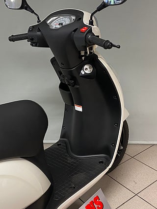 – Bakom skoterns klassiska, runda design döljer sig modern elektronik som en skarp LED-strålkastare på styret och snyggt inbyggda, lodräta LED-parkeringsljus i frontkåpan.