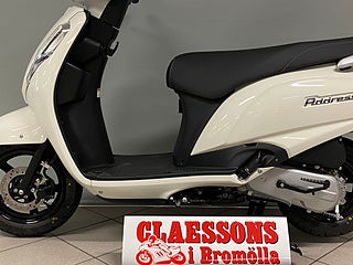 Address 125 är en lättkörd, kvick och smidig skoter med klassisk design och massor av körglädje. Samtidigt är den bränslesnål, bekväm och praktisk, vilket gör den till en perfekt pendlarskoter till jobb eller skola och för snabba ärenden på stan eller ren nöjeskörning.