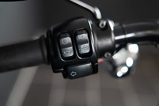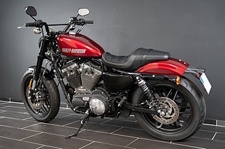 Nu har vi fått in en riktigt häftig Roadster! Lackerad i Velocity Red. Byggd på ett sätt väldigt likt en nakenhoj. Upside-Down gafflar och dubbla bromsskivor fram. Utrustad med Vance & Hines Short Shots. En Rough Crafts Headlight Grill och ett Hollywood-styre med 1" riser. Reeggad och redo för passagerare. En riktigt busig hoj att få en sportig känsla på en Harley-Davidson som mullrar fett! Passa på och klipp till medans du kan!