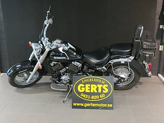 XVS650A DRAGSTAR CLASSIC . EN LÅGMILARE MED ENDAST 2 BRUKARE OCH HAR ENDAST RULLAT 1460 MIL . UTRUSTAD MED SISSYBAR, FOTPLATTOR PASSAGERAREN OCH VÄSKBÅGAR . ÄR NYSERVAD MED NYTT BATTERI OCH LEVERERAS NYBESIKTIGAD . FÖRMEDLINGSUPPDRAG VARVID EJ BYTE .